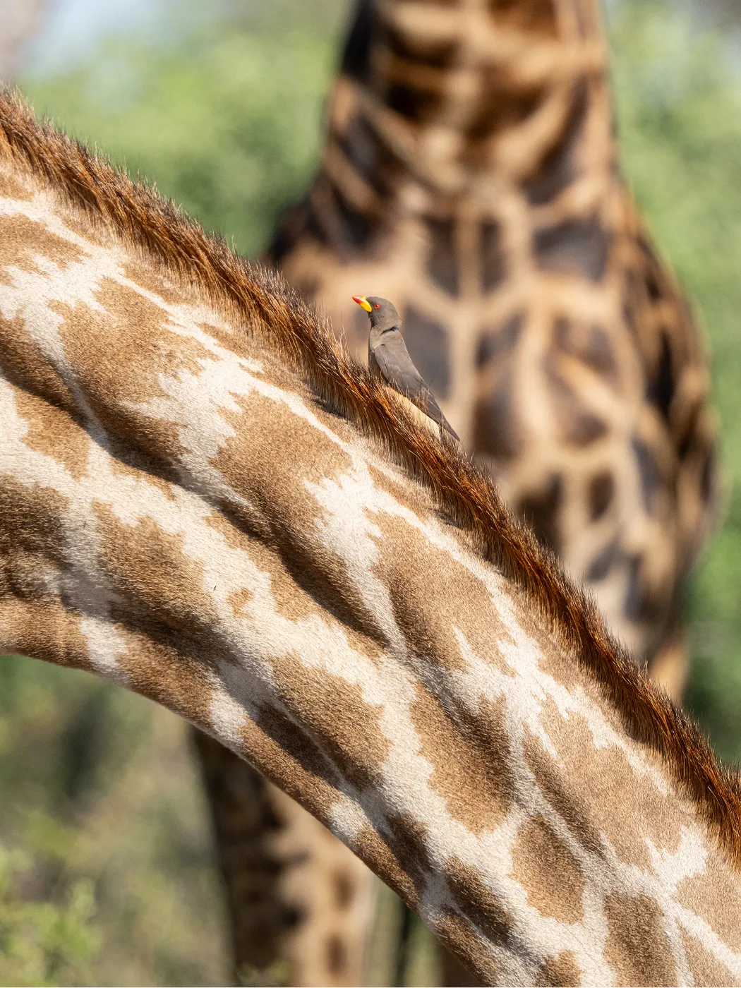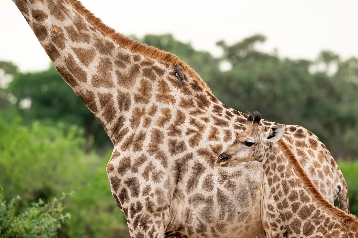 Yellow-Billed Oxpecker and Giraffes, Botswana 2021