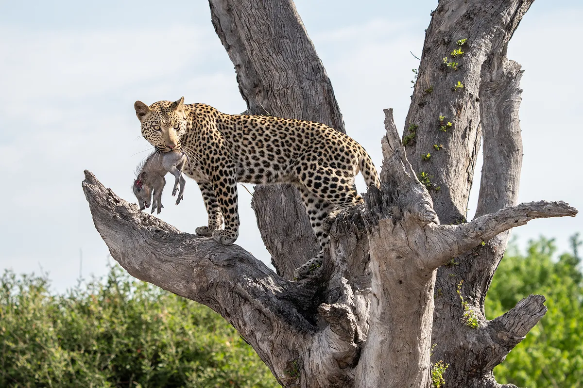 Leopard and Warthog, Okavango Delta, Botswana 2021